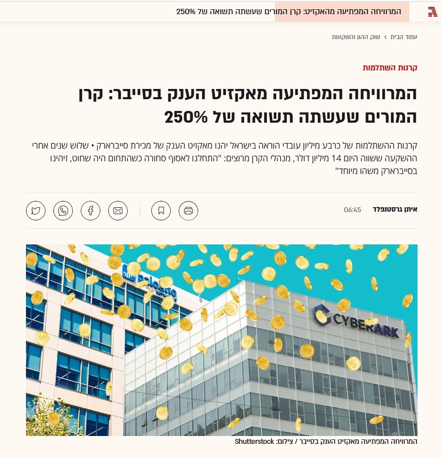 קרנות ההשתלמות של הסתדרות המורים רשמו השנה אקזיט יוצא דופן בהשקעה בחברת CyberArk, עם תשואה מרשימה של כ-250%.