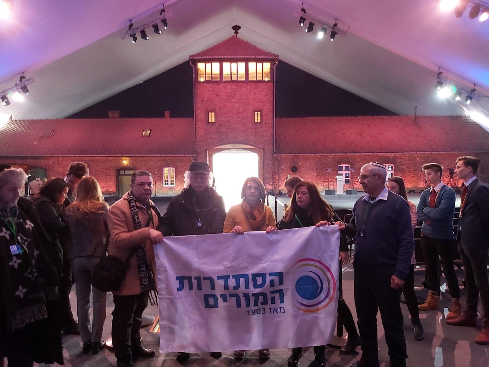 ביום ב' 27 בינואר, לקחנו חלק בטקס הבינלאומי לציון 75 שנים לשחרור מחנה אושוויץ. הטקס התקיים באוהל ענק שהוקם בפתח הכניסה על שער המוות בירקנאו. בהגיענו אל מקום הטקס ראינו חשיבות בהנפת דגלי המדינה והסתדרות המורים כמסר ברור לניצחון ולגבורה שלנו כיהודים, כישראלים וכנציגי המורים בישראל.