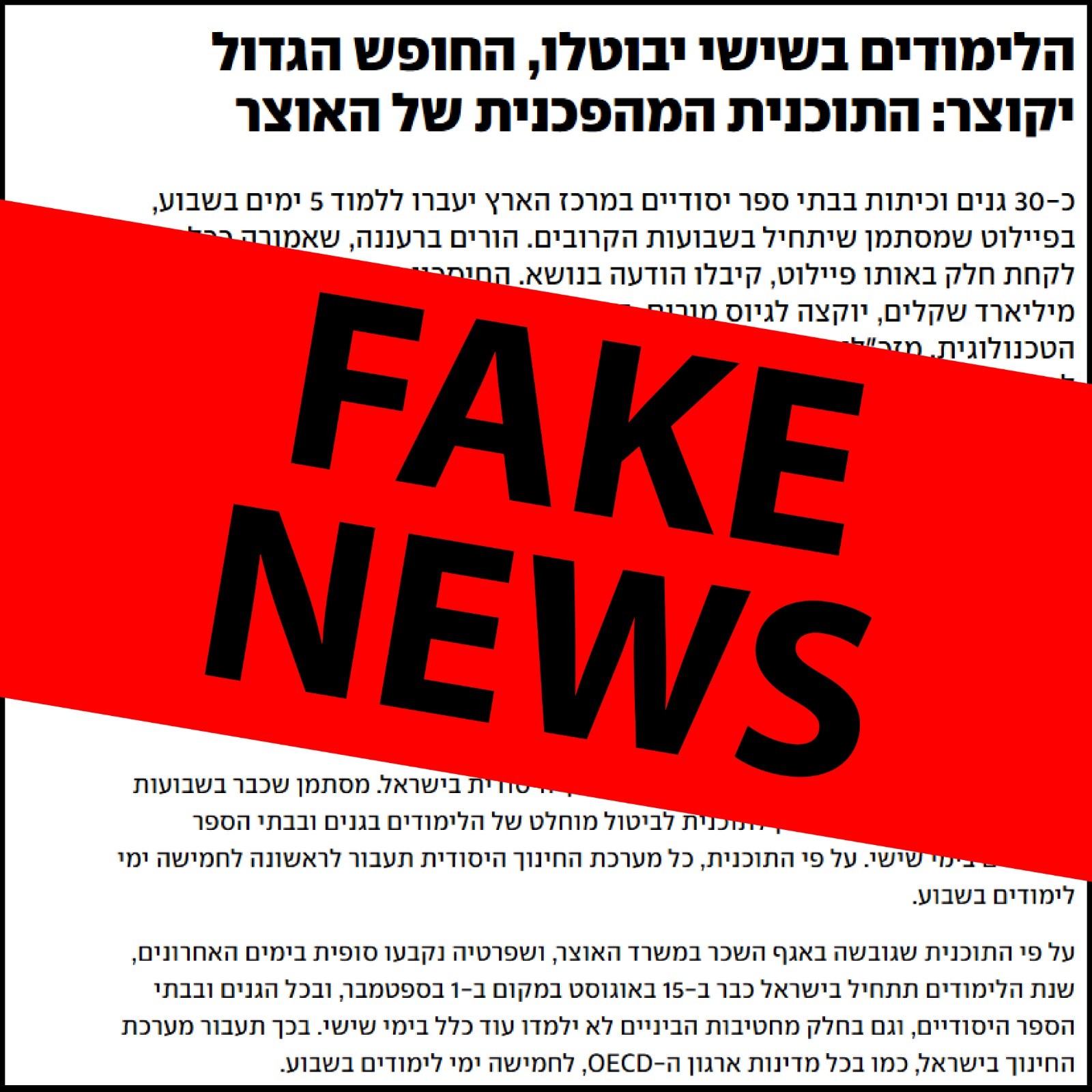 עוד פייק ניוז מבית היוצר של האוצר, שכהרגלו בקודש מוציא מהבוידעם וממחזר את התוכנית הזו לפני כל הסכם שכר. כמו שהוא החזיר אותה בעבר למחסן, כך יקרה גם הפעם. לא ניתן ולא נאפשר שום פגיעה בזכויות של עובדי ההוראה.