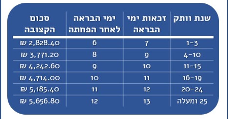 להלן טבלת תעריפי התשלום למשרה מלאה ובהתאם לשנות הוותק:
